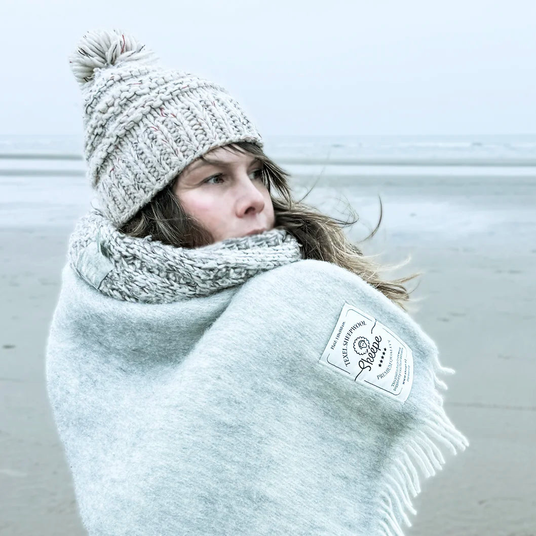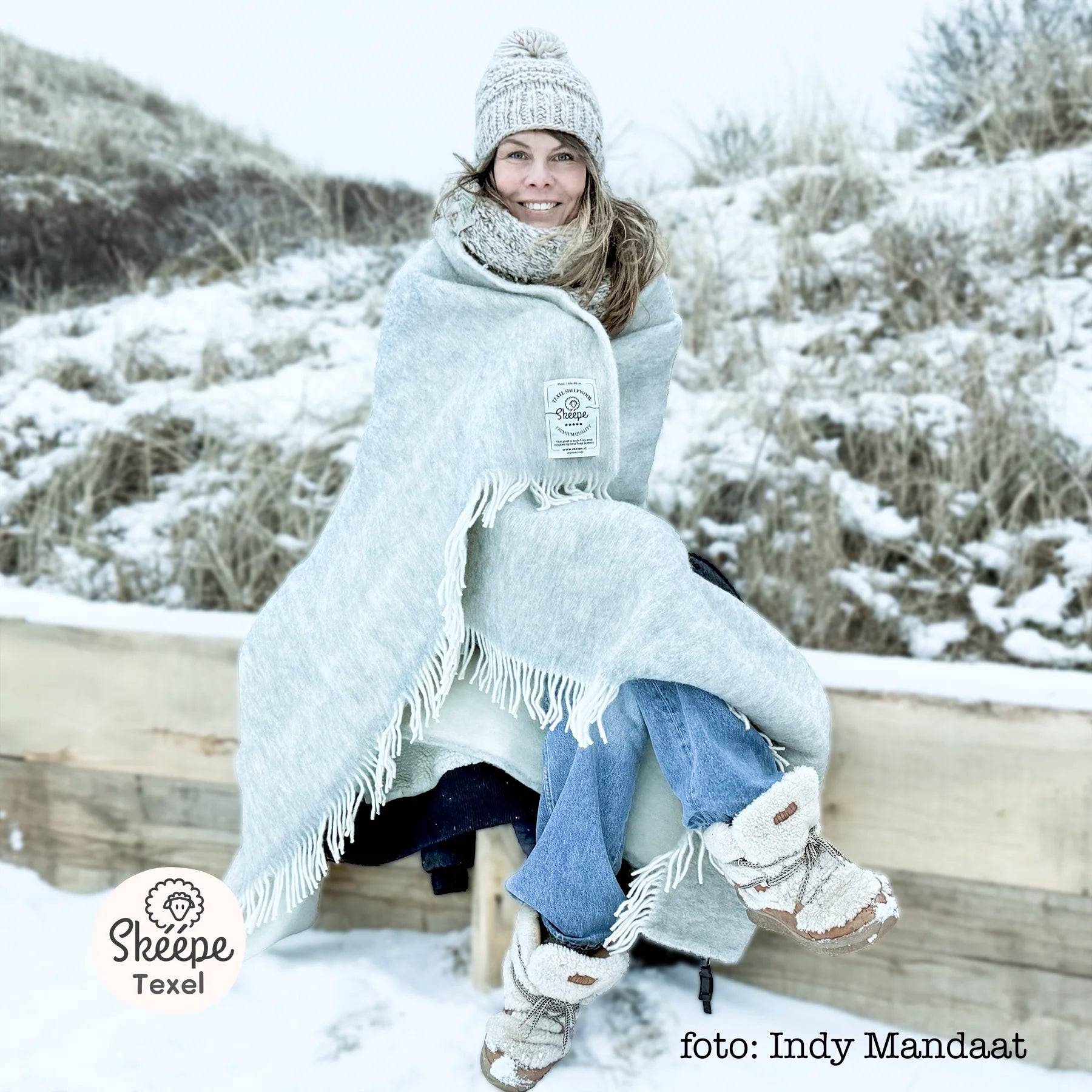 Hellgrau meliertes Wollplaid mit Fransen – 100 % Texeler Wolle Warme, atmungsaktive Wohnplaid aus natürlichen Materialien – 140 x 180... Lesen Sie mehr