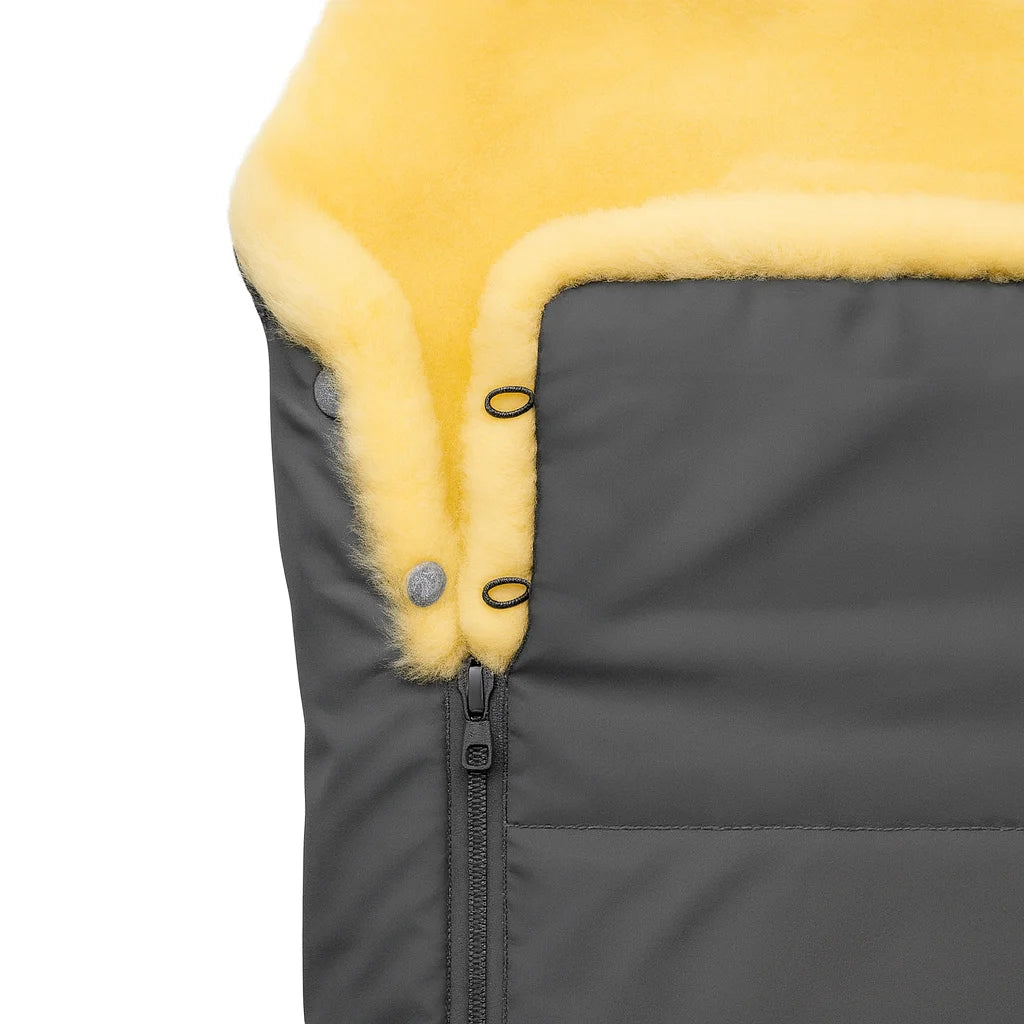 The inside is made of short-shorn (approx. 30 mm) sheepskin. This feels particularly soft and prevents long hairs from sticking to hands or face. Wool is known for retaining heat in cold weather, while still breathing and regulating moisture when it is a little milder outside. This keeps your baby at a comfortable temperature, without becoming clammy or too warm.