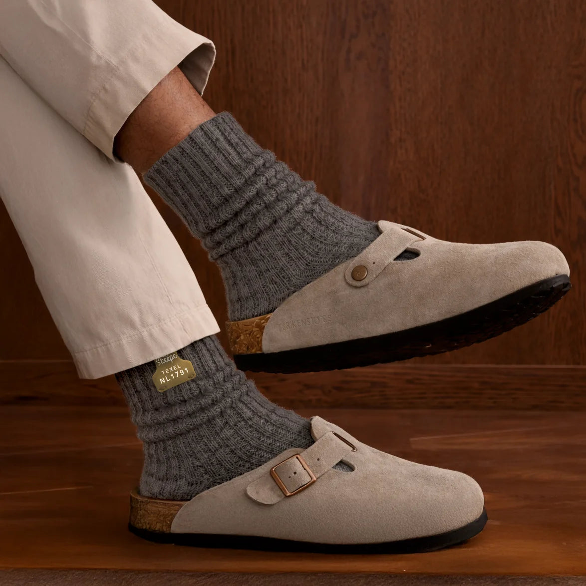 Grey wool socks – Mid-length – Beige label