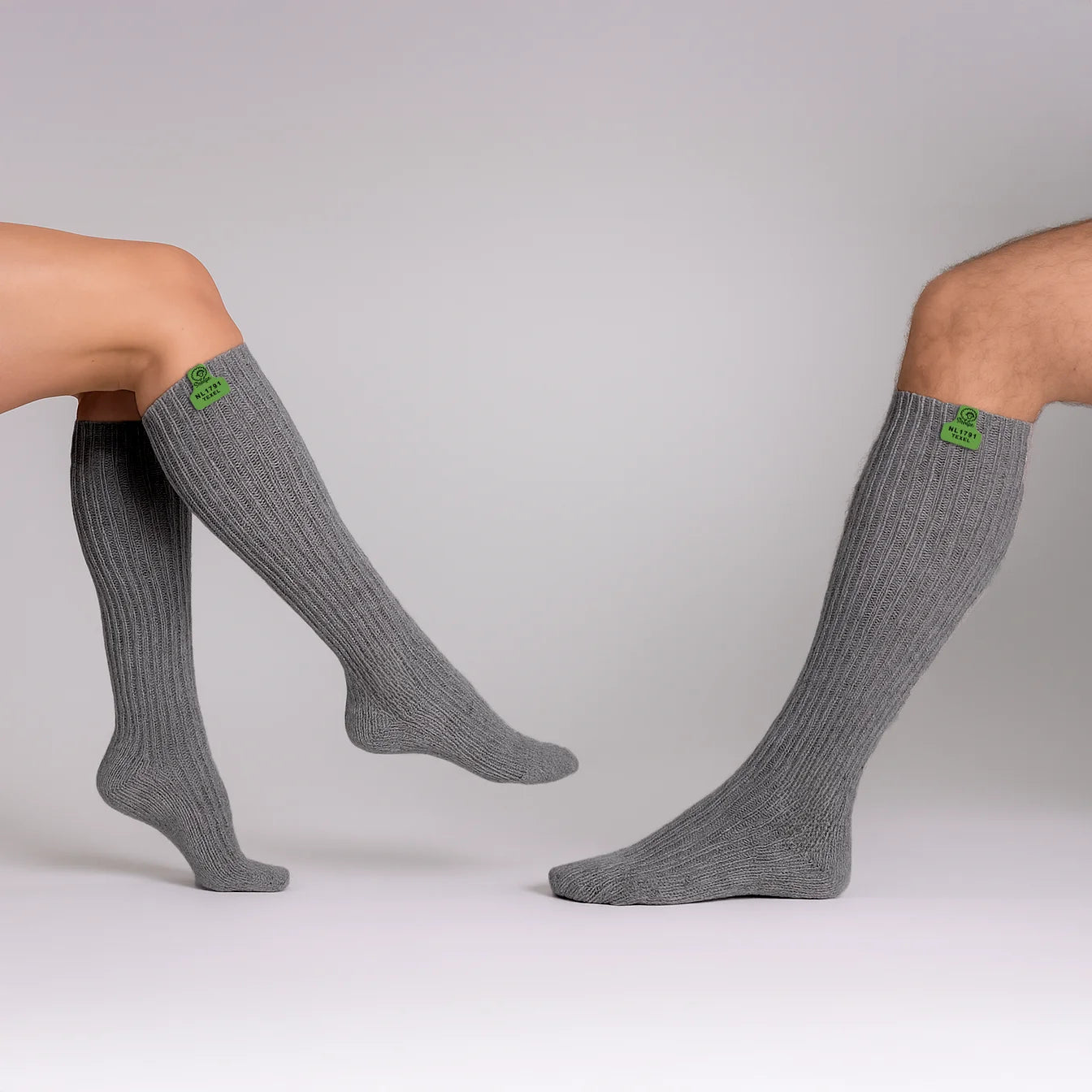 Chaussettes en laine grise pour femmes - Modèle extra long jusqu'au-dessous du genou