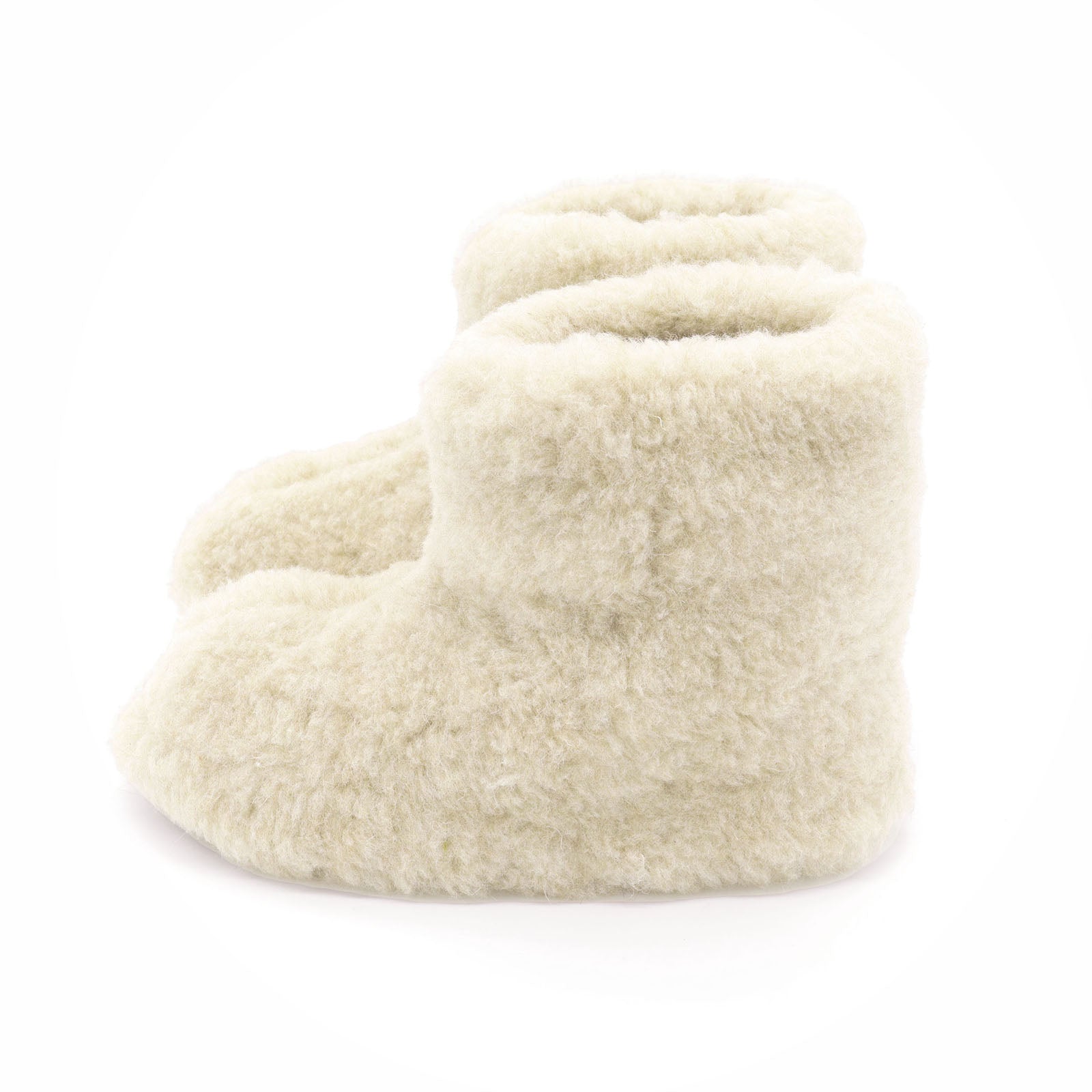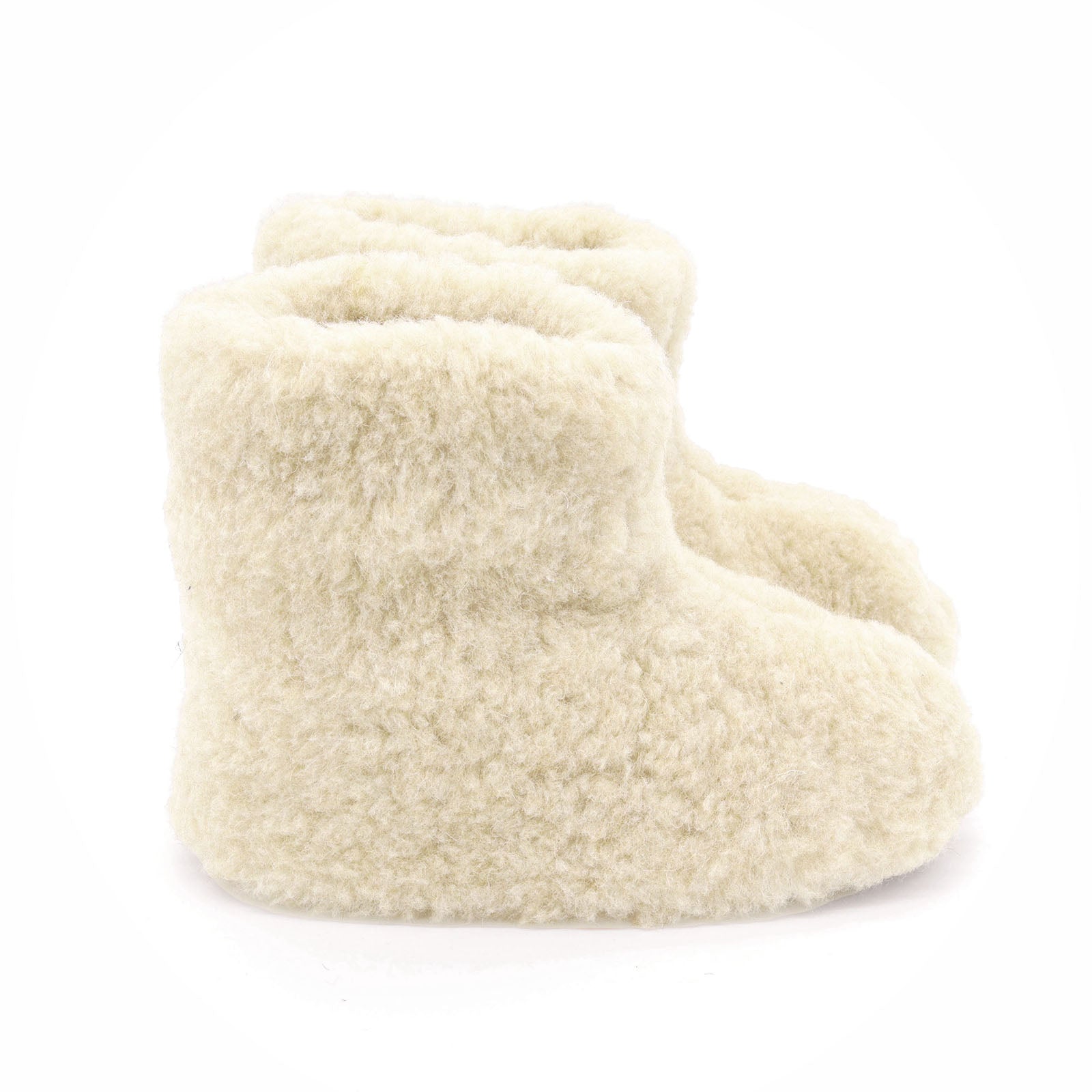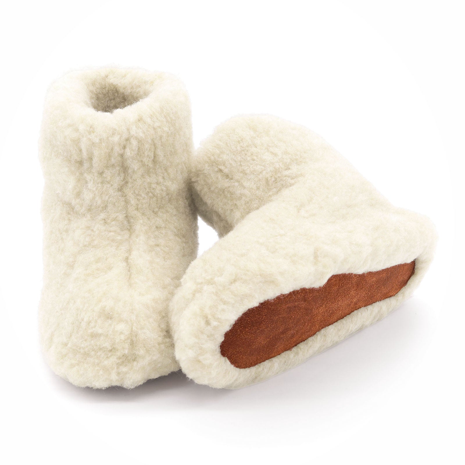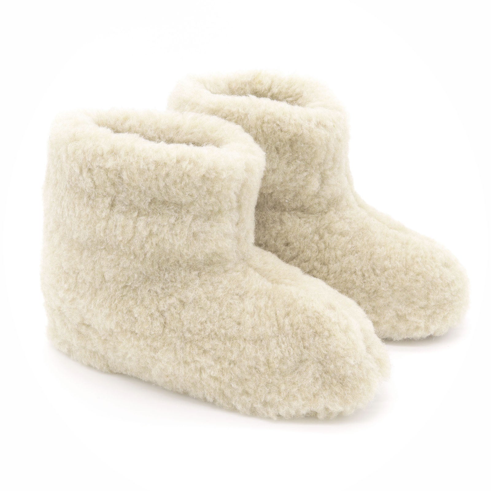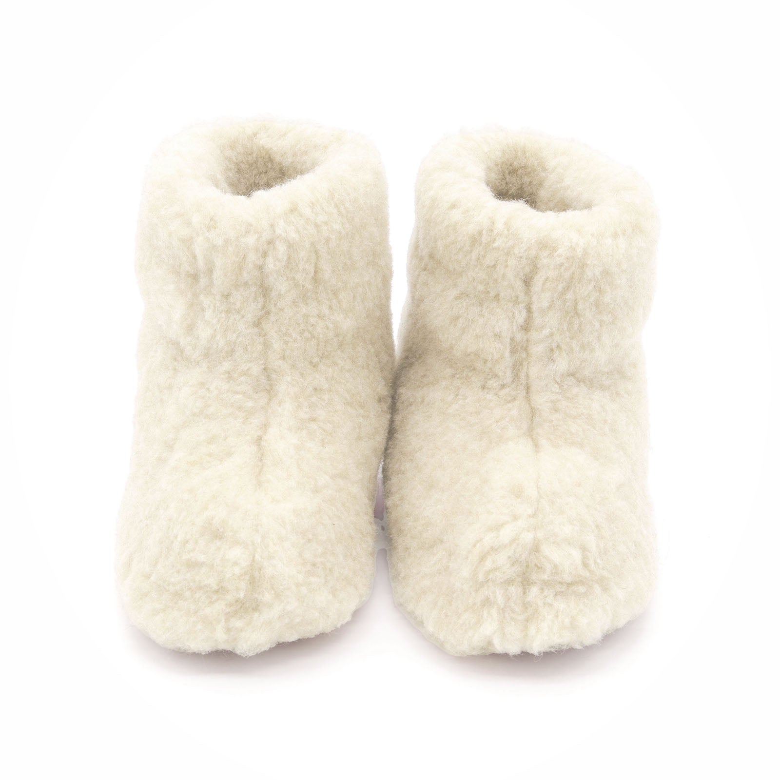 Chaussons en laine Texel blancs Ces magnifiques pantoufles en laine Texel sont fabriquées à 100 % en pure laine vierge... En savoir plus