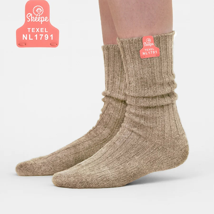 Beige wollen sokken – Middel lang – Roze label