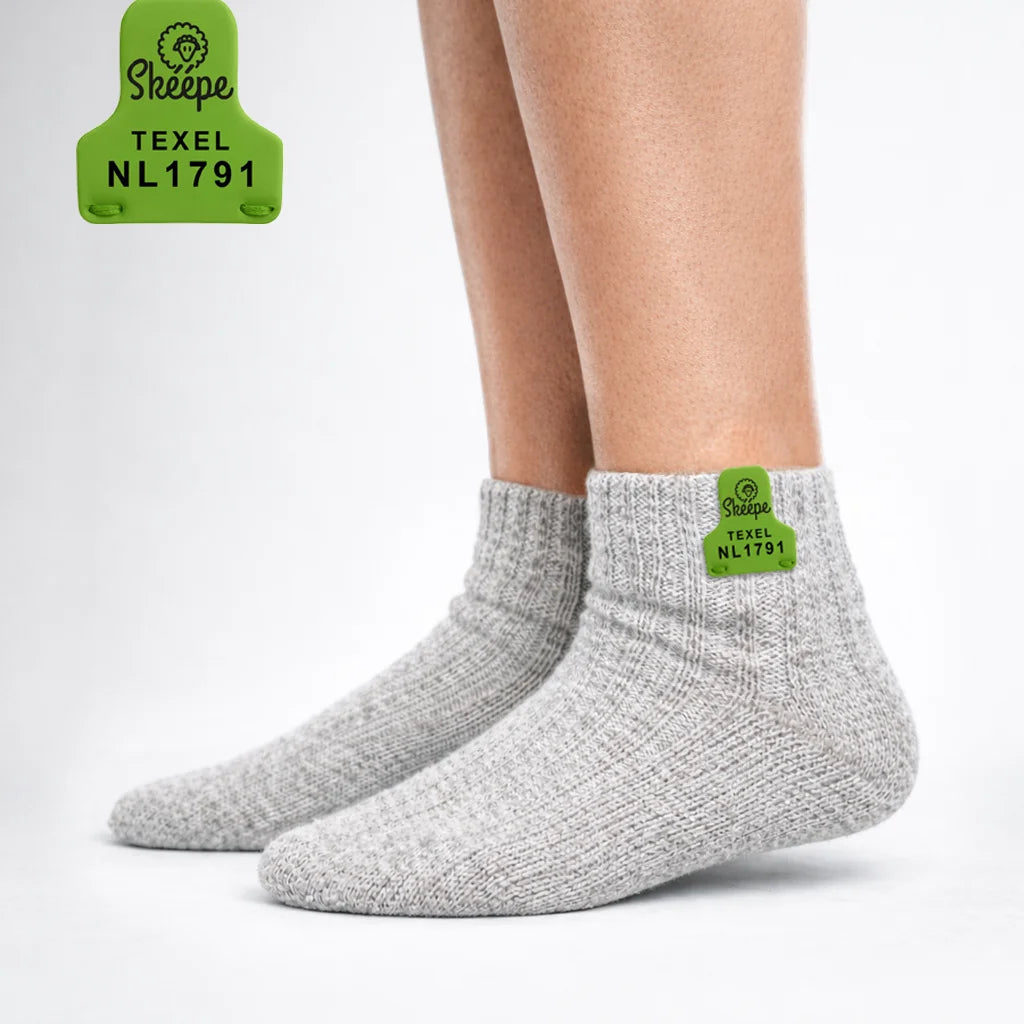 Lichtgrijze korte schapenwollen sokken Deze lichtgrijze korte schapenwollen sokken met groen label zijn gemaakt van wol van Texelse schapen. De... Lees meer